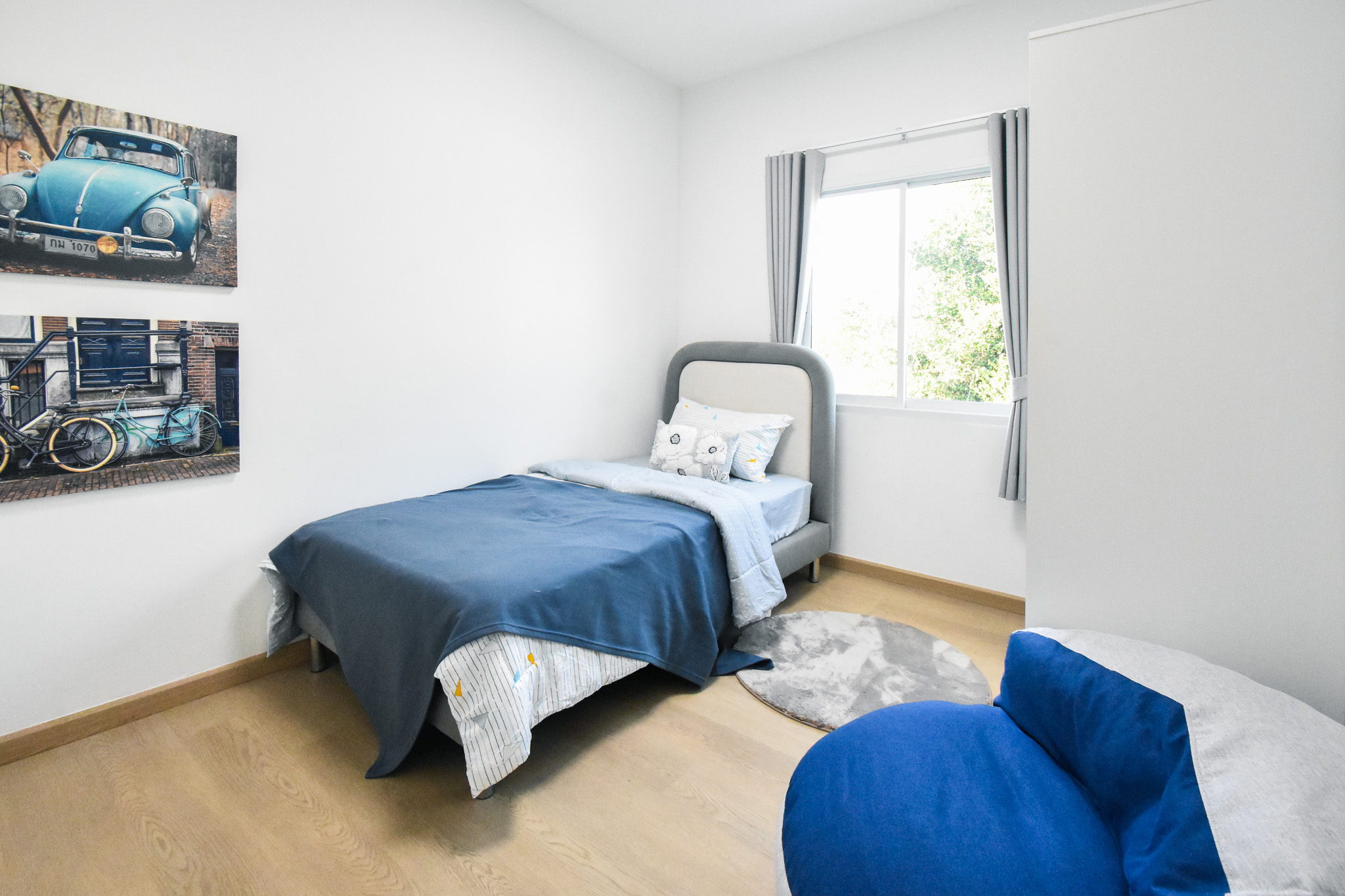 ทาวน์โฮม 2 ชั้น เพิ่มความเป็นส่วนตัวมากขึ้น โดยบริเวณชั้น2ผนังไม่ติดเพื่อนบ้าน ในแบบบ้านจะมี 2 ห้องนอน 2 ห้องน้ำ 2 ที่จอดรถ