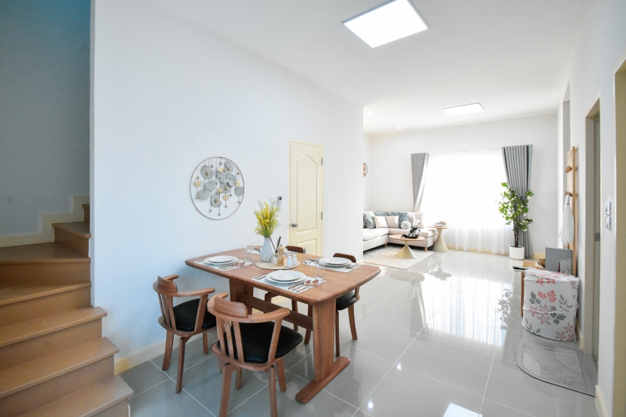 ทาวน์โฮม บ้านในฝัน สำหรับครอบครัวเริ่มต้น ในแบบบ้านจะมี 2 ห้องนอน 1 ห้องน้ำ 1 ที่จอดรถ